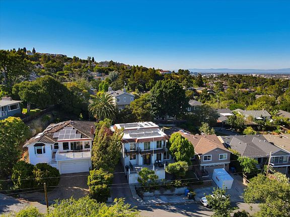 Spacious, light-filled and super efficient solar home commands sweeping views from the Bay to the Santa Cruz Mountains. Natural sunlight brightens every corner of this south-facing home with top sun score. Three-story home is nestled on one of the most desirable streets in San Carlos, a short walk to hiking trails and within the award-winning Carlmont High School catchment zone. All-new roof in 2018 with solar array pumps energy back to the grid and powers all your daytime needs. Private oasis in backyard makes clever use of native xeriscaping with minimal effort or water. 2006 second-story addition doubled the square footage and put three bedrooms and three bathrooms on the top floor while preserving the charm of a 1930s cottage built as a summer retreat from San Francisco's fog. Finished office on ground floor is a private retreat for telecommuting, home office or client visits.