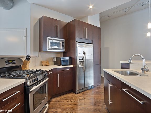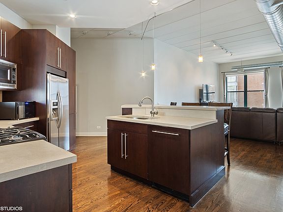 Gorgeous and massive 2 bed/2 bath condo in a boutique elevator building in the heart of the West Loop! Very unique south-facing 1,500 SF condo with roaring 11' high ceilings and loads of natural light. Move right in, the entire unit was just freshly painted. Hardwood flooring through out the entire home. Chef's kitchen with stainless steel appliance package, quartz countertops and breakfast bar. Huge 17x14 master bedroom with 2 walk-in closets. Spa like master bathroom with both a soaking tub and a stand up shower. Fantastic private 365 SF terrace right off the dining area. Attached heated garage parking and large storage cage included in price. There is not a better location in the West Loop. Close to all forms of public transportation. Whole Foods, Starbucks, Restaurant Row, Fulton Market Street and much, much more right outside your door.