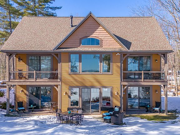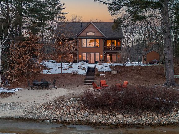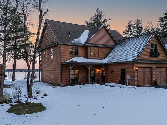 Welcome to your dream retreat nestled on the west shore of highly sought after Square Pond! This home is set back from the road with lovely curb appeal, stunning gardens, a lush lawn, and is one of the few homes uniquely situated to capture spectacular sunrise views with serene lake front living. Set on a peaceful 1/2 acre, this fully remodeled, custom-built home boasts nearly 3,000 square feet of graciously appointed, open concept, spacious living, with 9-foot ceilings and breathtaking views from every room! The first floor lends itself to private quarters that could serve as a quiet oasis for guests. It features 2 bedrooms with private patios as well as a large full bath/laundry room, open concept great room, island and coffee bar, all closed off by beautiful glass French doors. An open staircase leads to the stunning heart of the home on the second floor, highlighting the cathedral great room with double sided fireplace and magnificent views! Primary ensuite features a private balcony overlooking the lake, lovely gas fireplace, double vanity bath and walk-in closet. The open concept of the newly renovated chef's kitchen with butler's pantry features another balcony, brand new appliances, exquisite custom cabinets, granite countertops and gleaming red oak hardwood floors throughout. This waterfront property is a masterpiece of design for year-round living, family retreat or an excellent investment opportunity with a proven rental history. 100 feet of frontage with new 40' aluminum/cedar dock provides everything you need to enjoy the beautiful pristine water that awaits you! This is truly a one-of-a-kind lakefront property which will satisfy the most discerning of Maine lake lovers!