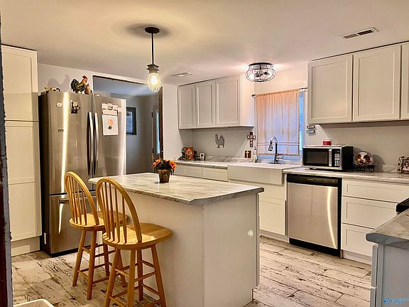 Price Improvement! This home has been completely remodeled. New HVAC, wiring, roof, windows, flooring, cabinets, vanities, new pex plumbing, new in-ground pool, storm shelter, moisture barrier, spray insulation, All of this sitting on 4 acres in the Hokes Bluff School District. Wood burning brick fireplace, large laundry room with a dog washing shower installed for your pets or guests to use after a swim in the pool. Concrete drive and a shop/mancave and a barn. Did I mention all new stainless steel appliances. Additional septic tank and water meter on property. Call today for your appointment.
