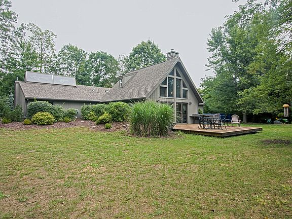 This beautiful setting is nestled on over 2 acres with room to build a pole barn and store your toys. You'll find the cathedral ceiling in the great room with a Jotul wood burning stove and abundant natural light coming from the wall of windows. The kitchen offers plenty of cabinets, including newer appliances, skylights. The dining area, 3 bedrooms, 2 baths and laundry complete the main floor. The upper room overlooking the living area could be a 4th bedroom or a study. 2 car attached garage.Wood decks on the front and back of property.Brand new roof(2017) exterior painted & new central air(2016)seamless gutters(2014)solar air heater. Open house Sunday 9/9 from 1-3pm.