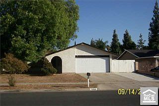Bank repo! Seller will credit $61000 to buyers costs. Wonderful single story very close to shopping, and schools- walking distance. 4 bedrooms (one bedroom can be family room or den if desired). Garage was 2 car but permitted conversion to one car with storage (other space created bedroom #3). Price includes washer, dryer, refrigerator (no warranty). RV access, large backyard with fruit trees, patio, blockwall and wood fencing. New rollup garage door, garage has direct access to home.