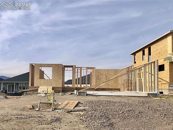 Our Jackson Farmhouse 2-story home, nestled on a garden level home site with incredible mountain views, welcomes you with its cheery All-American exterior, including a covered front porch just waiting for you to relax and enjoy a pitcher of iced tea. Inside, an inviting foyer beckons you to the sunny great room featuring a vaulted ceiling and a wall of windows overlooking Pikes Peak and the Front Range. Cooks will love the gourmet kitchen with granite countertops, gas cooktop, stainless steel appliances and extended pantry. The adjoining casual dining area opens onto a covered deck for year-round enjoyment. A private office, flex space, full bath, and spacious Everyday Entry complete the main level. Among the many focal points is a stunning staircase that connects the upper level bedrooms and highlights more views. The private primary suite boasts a luxurious free-standing soaking tub, separate shower, dual vanity, and two closets. Three additional bedrooms, a full bath, and laundry room complete the second floor. A finished lower level with generous rec room, bedroom, full bathroom, and storage space offers room for hobbies, movies, guests, and more. A three-car-tandem garage provides ample space for vehicles and toys. Thoughtful designer finishes, as well as air conditioning and a Rinnai tankless water heater, ensure the latest in both style and comfort.