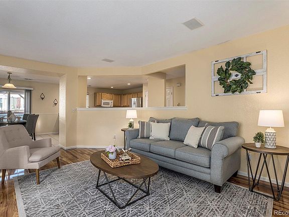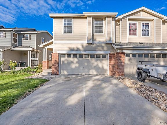 Welcome to your new Home Sweet Home in the desirable Villages North neighborhood! This well-kept model townhome with brand new carpet and interior paint has a variety of desirable features & extras from the builder waiting for your enjoyment. Upon entry, fall in love with open concept living where the large main living room, dining room & spacious kitchen flow effortlessly together. Enjoy a rare builder special electric fireplace & surround sound within the main living area. Continue through your living room to your large dining area that allows space for an expansive table. Head through to your light & bright kitchen where you will find extensive cabinet & counter space plus a sizable pantry. On this level, don't miss a conveniently located half bath, separate laundry room/mud room, giant crawl space & exit to your two-car garage. Head upstairs to find all three bedrooms, a loft, two full baths, & TONS of extra storage space. The primary bed will knock your socks off with its spacious layout, TWO separate closets, & private full bath with an additional craw space for storage. Enjoy another builder special featuring a large loft with additional surround sound, separating the primary bed from the second & third bedrooms. The loft space is perfect for an office, workout room, & or children's playroom. Head back downstairs & out of your sliding glass doors to your fenced in backyard that includes a deck with built in seating & grassless environmentally friendly back yard (saving you time & money on watering & mowing)! Bonus, the HOA covers exterior & roof maintenance for stress free living. This home is in a prime location with quick access to I25 & I76, 10 mins to Denver, 20 mins to DIA, 4 minutes to the Transit Station, 1 minute to Aspen Park Playground & 2 minutes to Pelican Ponds Open Space. Open House every weekend. Cheers!