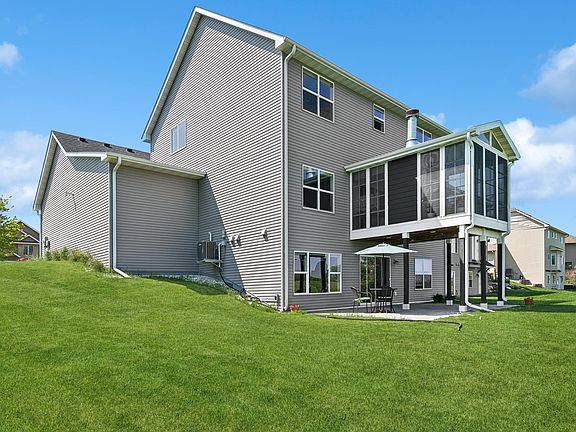 Discover your dream home with this stunning custom walkout two-story on The Riverwood National Golf Course! Enjoy open concept living with breathtaking views from every room, a massive kitchen island, awesome pantry, 3-season porch with a wood-burning fireplace, and "real" wood floors. Upstairs has 4 bedrooms, 2 baths, walk-in closets, and laundry. Owners’ suite has tray ceilings, private bath, and large walk-in closet. The finished basement features a bedroom, 3/4 bath, great room, bar, and exercise room. Oversized patio doors open to a stamped concrete patio, a great spot for grilling! The extra-large, heated and insulated garage offers nearly 1300 sq/ft of space.