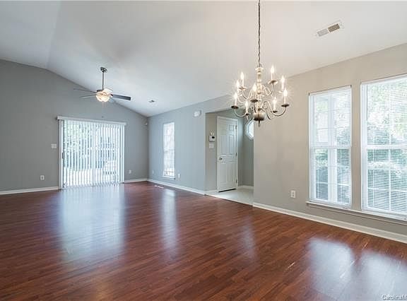 RARE to find End unit one story townhome with a garage!. Unit has new carpet, fresh paint, upgraded stainless appliances, and only a two-year-old HVAC. Conveniently located close to Northlake Mall, I-485 and I-77 and not far from public transit. Let the HOA provide you a pool and cover all of your exterior maintenance with dues under $150 a month! This will not last long!!
