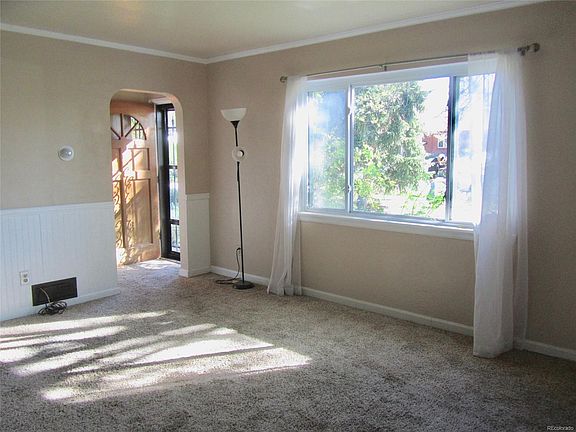 Here is your chance! This ranch is ready for you to make it your home. Spacious living room with accent venetian plaster wall, chair rail and crown molding. The dining room is freshly painted with wooden corner cabinets with glass windows and laminate flooring. Kitchen features tall cabinets, classic formica butcher block-look countertops, copper colored tile back splash, portable dishwasher, oven/range and refrigerator. There are 3 bedrooms. One has secondary entry into ¾ bath which lead into utility/laundry room would make a good study or den too. Utility/laundry room has sink, cabinets for extra storage plus includes the washer and dryer. Fenced back yard. Shed. Near Thornton schools and Five Star Stadium. Easy access to I-25.