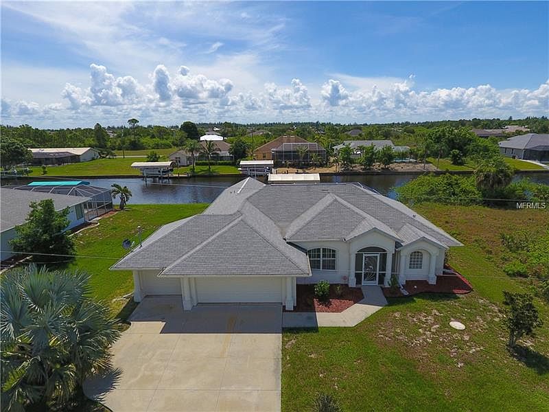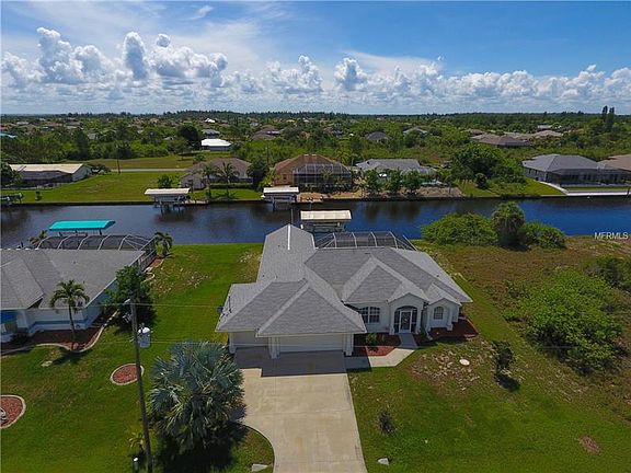 This home is very nice and roomy built on a seawalled property in the highly sought-after waterfront community of South Gulf Cove. Walking into the front door you will be amazed at the view that greets you, as you look out to over the canal complete with Pontoon boat waiting for you to grab your favorite beverage and go jump on the boat for a cruise around the canals or out to Charlotte Harbor for a day of fishing and sunbathing. Not only is this an amazing waterfront home it also boasts 3 bedrooms, 2 baths and 3 car garage with the popular split floor plan. At the front of the home is the spacious dining room with a large window and plantation shutters, to the left of the dining room is the large living room with plant shelf and vaulted ceilings. As you enter the kitchen you will be surprised at its size with Corian countertops at the breakfast bar, loads of cabinets, pantry, and decorative plant shelves. Across from the kitchen is a perfectly placed dinette, with pass through window to the lania overlooking the heated pool and canal. To the left is the guest wing with 2 guest bedrooms and guest bath which services the pool area as well. The master wing is on the right side of the home featuring a large master bedroom, slider to the pool, double walk-in closets leading to the master bath with garden tub, separate shower, and double vanities. This house is priced to sell so schedule an appointment to see this home. Dont take the chance of someone else buying your piece of paradise.