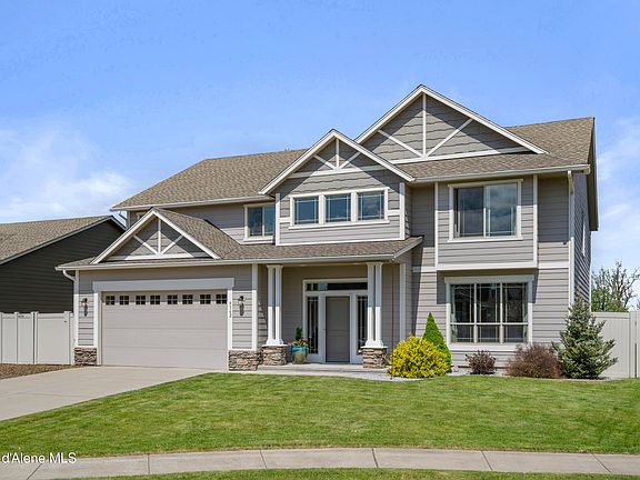 Welcome to this stunning 2016-built home in the highly sought-after Hayden community, offering breathtaking mountain views. With 4 spacious bedrooms with walk-in closets, plus a dedicated office, there's room for everyone to spread out and enjoy. The open-concept Great Room is perfect for modern living, featuring a large kitchen with walk-in pantry, beautiful cabinets, and an island ideal for gathering and entertaining. Step outside for a fully-fenced backyard - your own private retreat with a pergola-covered patio, perfect for summer evenings or weekend BBQs. Located within the desirable Coeur d'Alene School District, this home is only 3 miles from Hayden Lake public beach and boat launch, with a total of 3 lakes within a 15 minute drive. The oversized 3-car garage has room for boat storage or shop-storage area. Located near parks, golf, restaurants and shopping, you will enjoy peaceful living with all the conveniences nearby.