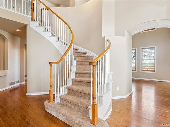 Nestled in the highly sought-after TrailMark neighborhood, this expansive 5-bedroom, 5-bathroom home backs to the Denver Botanic Gardens at Chatfield, offering sweeping views of Chatfield State Park and Reservoir. Boasting over 5,400 square feet, the Regal Meadow floorplan is TrailMark’s most spacious and desirable layout, designed for luxurious everyday living and exceptional entertaining. Soaring two-story ceilings in the living, dining, and family rooms create an impressive and airy ambiance, while the large eat-in kitchen features a generous island with breakfast bar, double ovens, and a gas cooktop—perfect for hosting family gatherings.