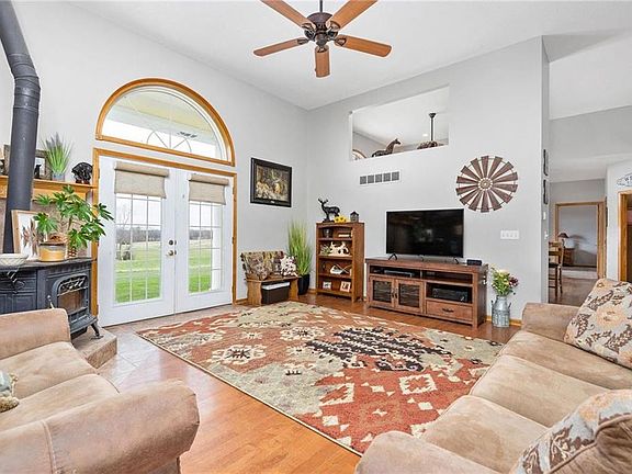 Exclusively Listed by Athene Miller! Beautiful home on 20 acres in ideal location. Just seconds away from I-35, off US 69 Hwy. 3 bedroom, 3 full bath, hardwood floors, finished basement with wet bar, and stained concrete floor. Covered back deck with large patio and built in fire pit. Wrap around sidewalk and attached 2 car garage. 30x50 insulated and heated Horse Barn with 15x50 lean-to's on each side. Continuous Steel Pipe fence, and a 190 x 108 outdoor arena with sorting pens and roping box.