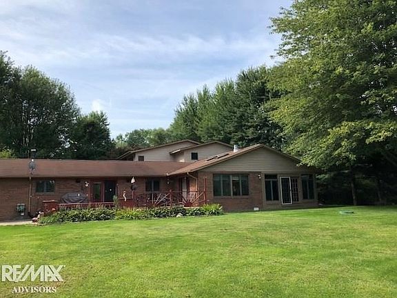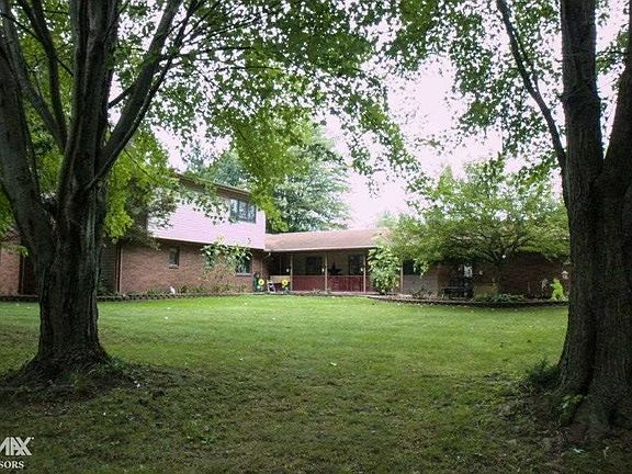 Something to come home to. Large family home nestled on 5 private acres. Land includes large stocked pond, beautiful trees, and out buildings. Pole barn with 2 overhead doors plus garage/shed. Home boasts large kitchen with huge island, 2 master bedrooms, 2 living rooms, incredible All Season Room with beautiful views of yard and wildlife. Handsome office with built in shelving, french doors. Natural fireplace with stone hearth. 1st and 2nd floor laundry. 2 furnaces, 2 A/C units, sumps with water jet back-up, home is solid and well cared for. Combined garage parking 4 cars or more. Covered front porch for front yard basking and large backyard deck overlooking back acres and pond. Plenty of room to roam inside and out! Check out attached virtual tour!!