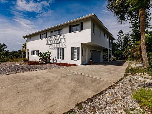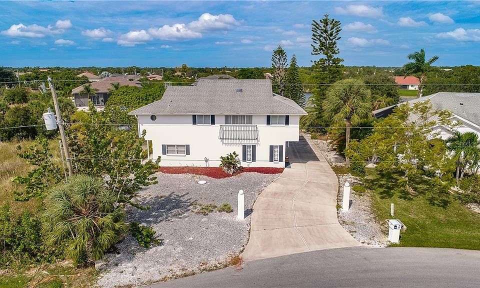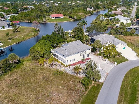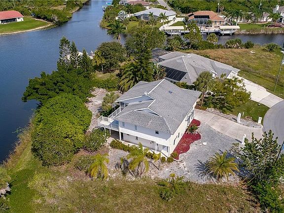 Truly a unique home! This 2 story waterfront home sits on a third of an acre with 133 feet of water frontage in the deed restricted community of South Gulf Cove. Theres plenty of room for family and friends with 2300 square feet of living space. First floor has a private guest suite with full kitchen and bath, and huge great room that could be divided into a living area and bedroom. Main living area on 2nd floor with great room concept has open floor plan with huge living area with built in cabinets and shelving, and could be divided into a formal living room and dining area. Home offers separate study with built in desk and work area and could be an additional bedroom, color accent walls, soaring vaulted ceilings, and blinds and pocket sliders throughout. Kitchen boasts tray ceiling, stainless appliances, and pass through window to lanai for easy entertaining. Master suite has garden soaking tub and private en suite bath with convenient laundry closet with washer and dryer. Other features include public water and sewer, side load garage, and parking pad. Youll enjoy relaxing on your 2nd floor balcony and deck with beautiful view of waterway. With its open and flexible floor plan, this home has endless possibilities for arranging your living areas. South Gulf Cove amenities include community park and boat ramp on the Myakka River. Proximity to local beaches, dining, shopping, and golf courses makes this property ideal for the Florida lifestyle. Also, easy access to public parks with bike and walking trails and picnic areas, and boat ramps providing access to many waterways, beautiful Charlotte Harbor, and the Gulf of Mexico. Quiet waterfront community, yet all amenities and conveniences nearby.
