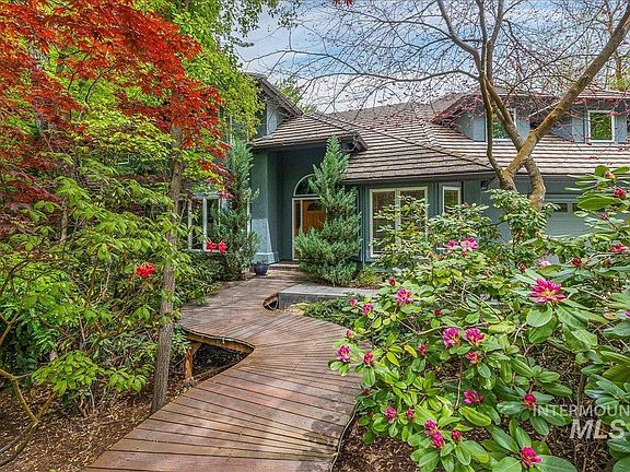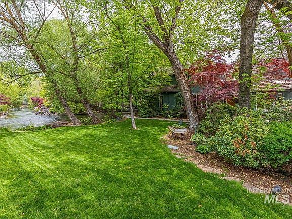 Gorgeous home on one of the most MAGICAL riverfront properties in the Treasure Valley in the coveted and gated community - "The Woods at Riverside." 440ft of riverfront on the main property and and additional 330ft of riverfront on the property's island! 1.4 acres of impeccably beautiful riverfront landscaping, and a huge island with a stunning arched spanning bridge. The home was designed to hear and see the river from almost every window in the home. Large open concept family room with vaulted ceilings, fireplace, large kitchen area with large island and pantry, formal dining room, office, steam room, wet bar, and outdoor space to entertain along the river. Amazing patio areas along the river perfect for entertaining or just watching the river and wildlife. Walk down the path and across the river to the arched bridge that will lead you to one of the most tranquil settings on the property's island with a beach/fire-pit area and stunning views. This home and property is absolutely a must see!