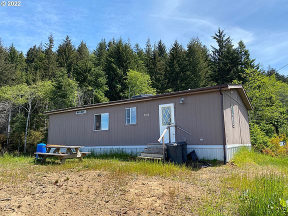 KING OF THE MOUNTAIN! Super private 4.83 acres w/ great views of forest & distant Pacific Ocean. Tastefully renovated, comfy, neat & tidy 1990 manufactured home features great room, 3 bed, 2 bath, laundry room, can be sold mostly furnished & all appliances stay. 24 x 40 mini barn. Quick hop to stunning beaches, rivers, golf, fishing & delicious dining. Surveyed. Low Taxes. Cash, 25%- 35% down or OMC, half down.