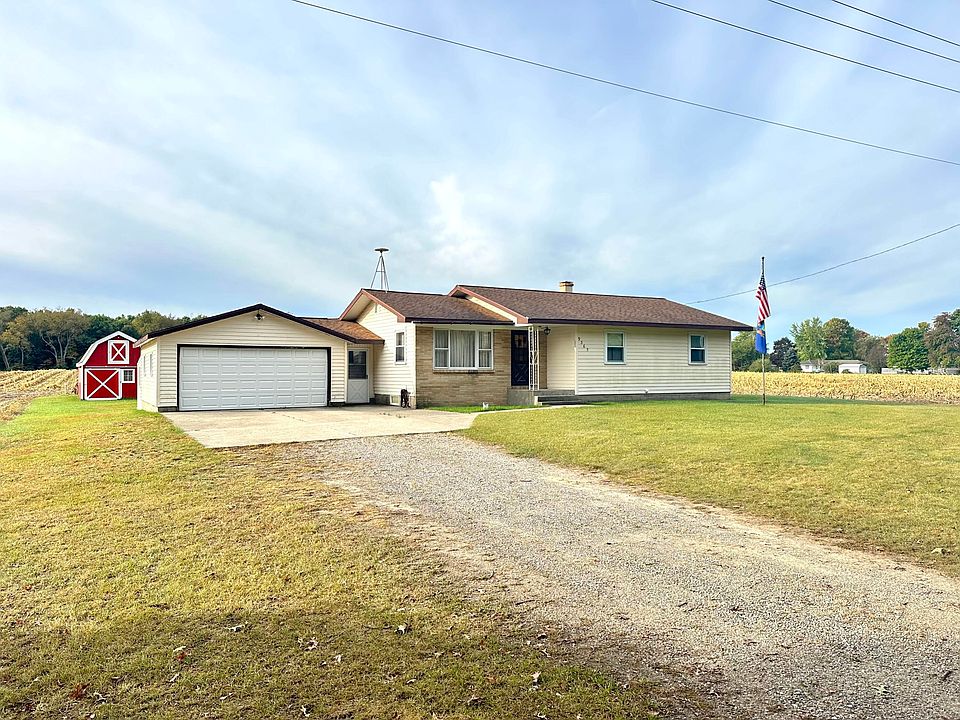 *** SOLD BEFORE BROADCAST *** Submitted to MLS for comps and data purposes. Mid 1960's ranch located on just shy of a half acre on the northern outskirts of Belding and on a newly paved road with natural gas offering 1244sq' with 3 bedrooms, 1.5 baths, eat in kitchen plus living room and laundry on the main level and partially finished basement with family room, rec area and non-confirming 4th bedroom or office. Slightly dated but clean home. Additional amenities: 2 car attached garage, spacious enclosed porch on the back side with access to back yard, storage shed and 14x18 barn with loft.