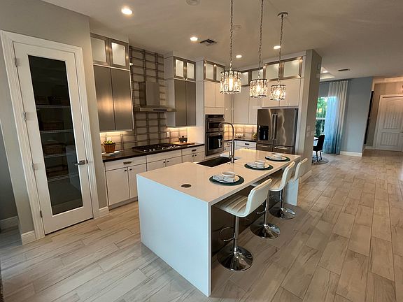 Toll Brothers Torrance Antilles Fully Furnished MODEL Home is on the market. The welcoming covered entry and foyer flow into an inviting hallway with 10' ceilings revealing a bright and open floor plan. The well designed kitchen features a large center island with breakfast bar, plenty of counter and cabinet space and pantry. The second floor expansive primary bedroom suite is highlighted by dual walk-in closets and deluxe primary bath with soaking tub and separate shower and private water closet. Formal dining room and private study. The large great room with 12' expansive sliders to rear expanded covered lanai over looking the pool and lake. House is estimated to close late Fall 2023.