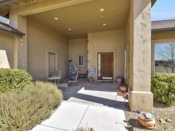 Private, peaceful & spacious home in Mingus Meadows, with paved roads and minutes away from all the amenities. Single level living, open, split floor plan, with over sized 3 car garage and RV parking access. Landscaping front and back on drip system. Sealed duct work which makes home very energy efficient. Neutral color scheme, 10 foot ceilings, 20 inch stone tile flooring. Gas stone fireplace in main living area and take a look at gas fireplace in master suite! Bar with sink and fridge, great for entertaining. Breakfast nook, built in desk and doggie door in main living area. High end appliances in kitchen, including reverse osmosis system and water softener. Large laundry room with a pet washing station. New driveway installed 5/19 and new HVAC 11/17. Tinted windows on west side of home