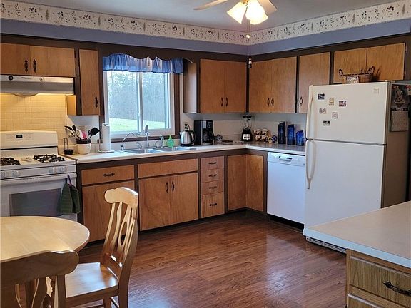 Beautifully kept Ranch! Spacious eat-in kitchen w/appliances, good sized living room w/large updated windows & gas fireplace, New metal Roof 2020. Lower level rec room, huge garage tandum 4 car, nicely kept yard. You'll love the country setting but close to everything!
