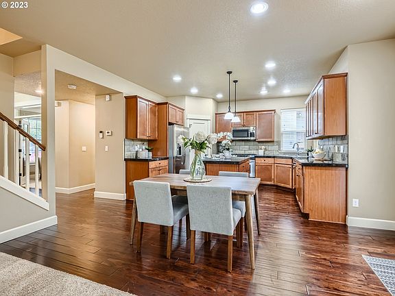 Come Home to this AMAZING Happy Valley Craftsman tri-level home with versatile floor plan! Quiet street with a cul-de-sac at the end with Little to no traffic. Located in Happy Valley's beautiful "Lincoln Heights" neighborhood! This spacious home with five bedrooms has an additional office/den on the main floor. The home is meticulously maintained and MOVE IN READY! Vaulted ceilings in primary bedroom and office/den. There are 9ft ceilings throughout that create an open and light feel. Granite counters in the kitchen and stainless steel appliances-refrigerator included. Gorgeous engineered hardwood floors. Gas fireplace, central air, tankless hot water heater and two decks. This home is set up great for Dual living the daylight basement has outside access and includes living area, bedroom and full bath! Don't miss the storage area on the lower level. Security system is installed with cameras video/audio at the front of the house and front door all stay! Large overhead garage storage racks are included in the sale. Inviting front porch and entry. Front yard landscape and maintenance are included in the monthly HOA. The backyard recently refreshed with weed barrier fabric and new bark dust. Backyard is fenced and very private plus BACKS to a large peaceful GREEN-SPACE. Serene walking trails throughout the neighborhood for your enjoyment. THREE CAR GARAGE, minutes to I-205, Dog Park, Shopping & Great restaurants. Clackamas High and Happy Valley Elementary schools. Too many amenities to list***No disappointments here just move in and enjoy!