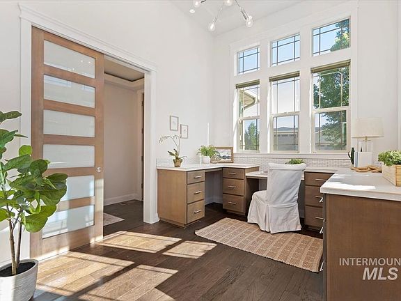 Welcome home to this immaculate move-in ready 3 bedroom, 2.5-bathroom home offering style, comfort, and functionality. The spacious primary suite features a luxurious master bathroom with upscale finishes and custom cabinetry and lighting. A second bedroom includes its own private en suite. The third bedroom, complete with custom built-ins, offers the flexibility to serve as a stylish home office or cozy guest room. Enjoy cooking and entertaining in this true masterpiece gourmet kitchen, featuring high-end appliances, abundant counter space, and a layout perfect for both everyday living and entertaining. Step outside into a peaceful, low-maintenance backyard retreat—your own serene escape, perfect for relaxing or hosting. Built just nine years ago, this home combines modern amenities with thoughtful design. Located just around the corner from the beautiful community pool in one of Boise’s most desirable neighborhoods, this home is a perfect blend of modern convenience and comfortable daily living!