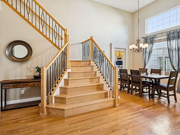 Welcome to this beautifully maintained 4-bedroom, 3-bath home in the highly desired Chatfield Bluffs community! Pride of ownership shows throughout this immaculate property featuring an open, light-filled layout and hardwood floors spanning the entire home. The chef’s kitchen is perfect for entertaining with a double oven, ample counter space, and seamless flow into the dining and living areas.