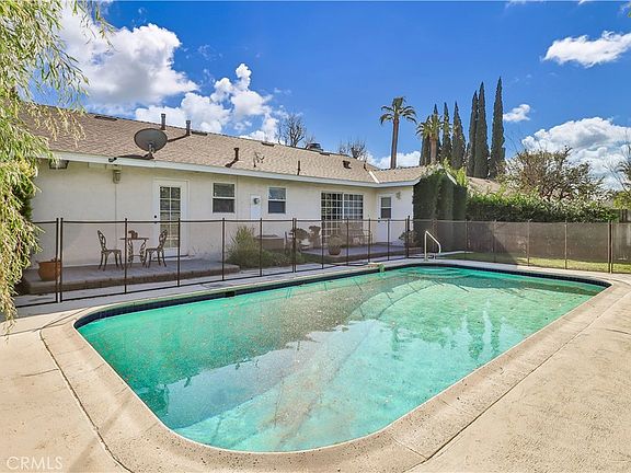 Back on the market as of 2/20/2025. Buyers loss your gain! Absolutely charming single story home with beautiful pool! Featuring a 2 car garage, 3 Bedrooms, 2 Bathrooms, 1,470 Sq.Ft. of living space, on a 7,558 Sq.Ft. Lot. Light and bright living room with smooth ceilings, Plantation shutters, gleaming original exposed hardwood floors, and custom fireplace. Large formal dining room, with recessed lighting, hardwood floors, and a sliding glass door to the backyard (may also be used as a family room). Kitchen with breakfast nook, gas stove top, beautiful wood cabinets, tile floors, garden window above the sink, attached microwave, double ovens, dishwasher, and is open to the inside laundry room. Large primary bedroom with smooth ceilings, mirrored closets, ceiling fan, door to the backyard, and an Ensuite bathroom with tile counter tops, tile walls and a shower. All bedrooms of good size. Large hallway bathroom with bathtub/shower. Additional features include: updated Milgard windows, central air conditioning and heat, updated doors, copper plumbing, new roof in Oct. 2021, and concrete driveway in 2013. Backyard with large pool (with removable safety fence), and grassy area.