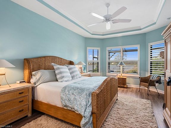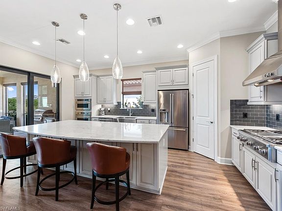 Most popular Lazio Golf home. This gem is less than 1 year old! Golf and lake views. Gourmet kitchen has upgraded cabinetry, upgraded appliances, gas cooktop and wine cooler. Large Master Suite with extended bay windows. Huge master closet with custom drawers and shelving. All closets have custom shelving. Master bath has 2 sinks and very large walk in shower. Plantation 4" wood shutters have been installed thru out the home. Quartz counter tops thru out also. No need for bulky outdoor hurricane shutters on this home. Impact windows and sliders on every opening!! Enjoy outdoor living with an extended lanai with Panoramic screens. Outdoor kitchen has gas grill, refrigerator and sink. Beautiful salt water pool and spa. Includes full golf privileges. Enjoy this beautiful 18 hole golf course, driving range, chipping and putting areas. The work out center is state of the art. There is also full service salon, nail and massage spa for pampering yourself. The resort style pool and spa with cabanas and Tiki bar. This is a very active community offering something for everyone. The Culinary Center is underway with completion projected for 4h quarter 2020.