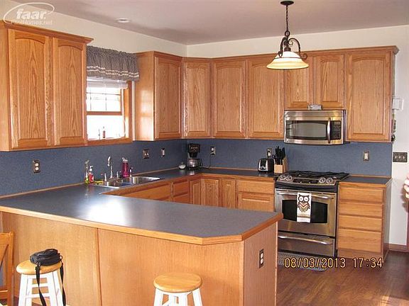 Step in from the garage into a huge kitchen with 42 inch cabinets. You will be amazed by the storage in the numerous cabinets. Walkout from the dining area to a 12 x 33 Deck, which walks down to your huge backyard area complete with Pole Barn. Covered Front porch is 6 x 30. 9 foot ceilings in the basement offers endless opportunities. Brokered And Advertised By: RE/MAX Platinum Listing Agent: Gary R Morris