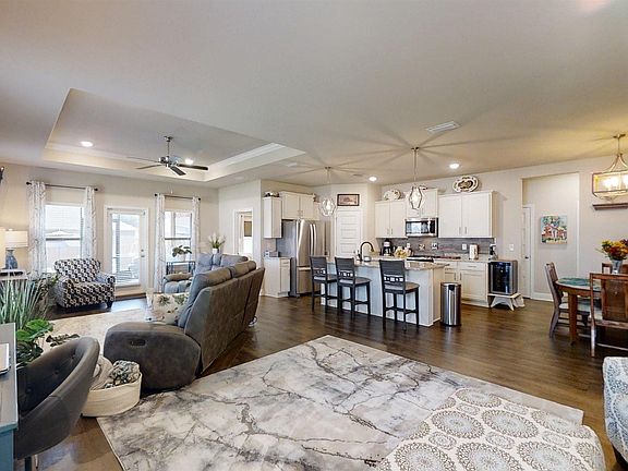 Welcome to this stunning 4BED/2BA Smart Home, built in 2020, featuring an exquisite private backyard oasis! This GOLD-Fortified home boasts a wealth of exceptional features, including luxury plank flooring throughout the main living areas, stainless steel appliances, granite countertops, crown molding, elegant light fixtures, and trey ceilings. Step outside to discover your personal paradise—a beautifully landscaped, fenced-in backyard complete with a sparkling pool and soothing spa, perfect for relaxation and entertaining. The screened-in back patio offers a serene view of this backyard retreat, enhanced by motion-activated lighting that creates a magical ambiance for evening gatherings. The open-concept kitchen, living, and dining areas are spacious and filled with natural light, making it ideal for both everyday living and entertaining. The kitchen features stainless steel appliances, large island with bar seating, pantry, soft-close cabinets, and stylish wooden backsplash. The primary suite, located off the living space, includes trey ceiling, double vanity, large garden tub, separate shower, walk-in closet, and private water closet. With Smart Home technology, you can easily manage the control panel, doorbell, smart code lock, two smart light switches, and thermostat—all from one app. Conveniently situated approximately 1 mile west of Hwy 59, Turnberry Crossing is just minutes away from the many shops, restaurants, and attractions Foley has to offer, and it’s a short drive to the beautiful beaches of Gulf Shores and Orange Beach. Buyer to verify all information during due diligence. Schedule a showing today!