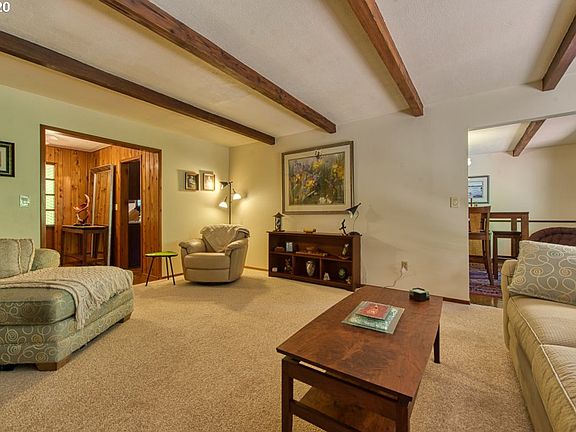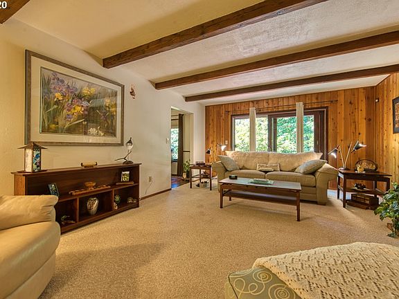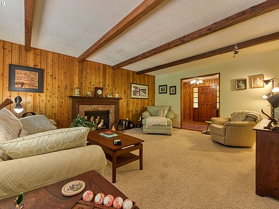 Beautiful & sheltered home on private rd only 10 min. from town! This home is move in ready & sits on almost 5 acres including timber, apple orchard & flowering landscaped grounds. The property includes a lg 36x24 shop, dtchd 2 car grge w/built-in storage shelves. Inside you'll find new kitchen appliances & neutral palate w/custom redwood beams, doors & cabinets, red cedar & pine wall accents, oak flooring & a lg fireplace hand crafted of Rogue River rock. See attchd for all updates.