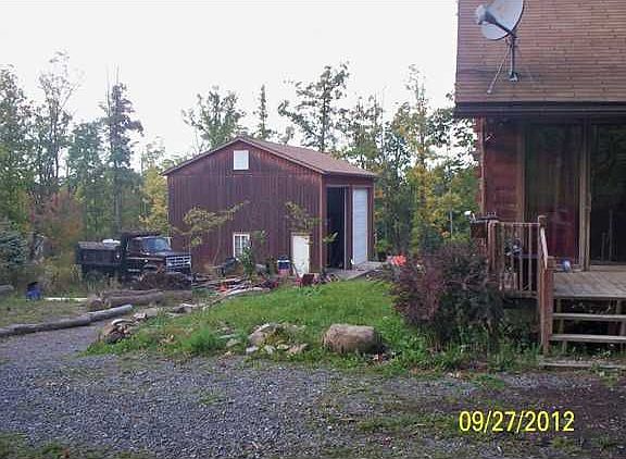 Priced way below assessed value for quick sale. Selling as is. Post -n-Beam 3 bedroom log home nestled in 14 private wooded acres & pond. Woodstove that will heat the whole house. 30 x 40' Boarden Batton insulated Barn with 16' doors & 6" concrete floors & electric, 2 car detached garage with 2 extra bays (double insulated) . New well in '06, new leach field, two tax parcels ( first 8acres tax # 148-000-0001-032-200 and other 6 acres tax # 163-000-0001-014-200
