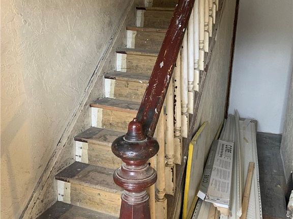 Great home that needs some finishing work to make it livable. New flooring and paint throughout most of the home. Full bath and laundry hooks on main floor. Kitchen has new cabinets installed and recessed lights. Second floor has three bedrooms and mostly a full bath. Third floor has two finished rooms that could be bedrooms/playroom/office. Unfinished basement for storage. Small yard off of kitchen. One car detached garage. All materials at the home are included in the sale.