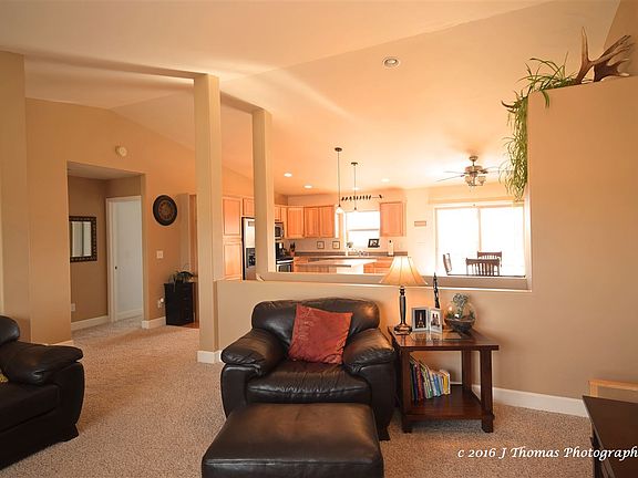 Bring the family and move right in! Open floor plan, newly finished basement, extra storage room, hardwood floors, stainless steel appliances and nice touches everywhere. Fenced back yard, underground sprinklers, garden spot, with a nice easy drive to town.