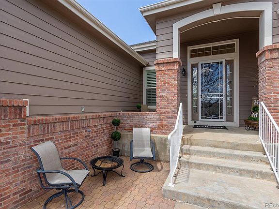 Ask about Homeward Mortgage interest rate permanent buy down! Gorgeous 3b+ office/3bath ranch style patio home with large basement in Castle Pines BrambleRidge Village is carefree living (HOA does the yard front and back) in a fully remodeled, immaculate and move-in ready home. Enjoy open concept living with kitchen, dining and living room open with high ceilings, lots of natural light, and a stone gas fireplace. This is perfect for entertaining. The large chef's kitchen boasts bright quartz countertops, ample counters and cabinetry, stainless steel Frigidaire appliances, a farmhouse sink and beautiful tile backsplash. There is a mix of pendent and recessed lighting above an impressive large kitchen island. The primary suite has a cozy sitting nook, an elegant coved ceiling, a very generous walk-in closet, also with access to the private 5 piece ensuite with double vanity, separate soaking tub, and lavish tiled shower. The guest room, 3/4 bath and an office with with glass doors are in the front of the home on main. Off the kitchen is the mud/laundry room with a utility sink, storage and new washer. The large basement area opens to a family/rec room with a pool table, new carpet, room for your imagination, and a third bedroom with a walk-in closet and 3/4 bath. Enjoy sitting on the front porch or on the back deck in the Wind River hot tub breathing in the clean crisp Colorado air. Find nearby trails, community pool, park, picnic area, tennis and basketball courts. Just minutes to Daniels Park, Castle Pines Golf Club and the Ridge at Castle Pines North. HOA provides grounds maintenance and snow removal right up to the front door! Smaller backyard, private, any fence or additions in back must be cleared by HOA.
