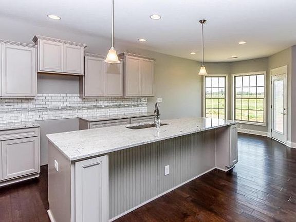 This ranch home offers an open layout and varied ceiling height, including ceilings over 10' throughout the entry and family room. The foyer has a 10' trey ceiling opening into the family room with stacked stone fireplace, and dining room with trey ceiling. The kitchen is open to the family room and incorporates a pass-through utility room with garage access,drop zone for hanging jackets and storing shoes, a butler's pantry with granite countertops and plenty of storage, main kitchen area with all upgraded stainless appliances and pantry storage, and a breakfast area leading to covered patio overlooking the rear yard. The master suite has a bay window, dropping in garden tub and fully tiled shower with double bowl vanity. Two other spacious bedrooms share a bathroom with transom window