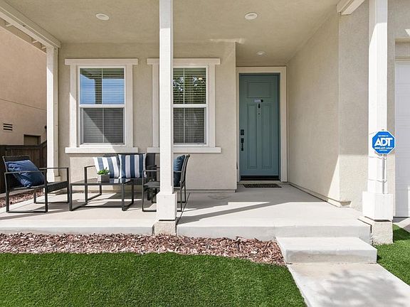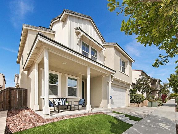 Located steps away from the Harvest Wellness Center in the beautiful community of Escaya, this 4BR, 3BA home is turn-key and awaiting its next owner! This home boasts a 5.55kWh solar system and car charging capabilities, an alkaline whole house water filtration system, artificial turf both front and back for easy maintenance, and beautiful cosmetic enhancements inside including upgraded luxe vinyl plank flooring downstairs and a herringbone subway tile backsplash in the kitchen. Soft close, warm toned shaker style cabinets are prominently featured in the open kitchen with large center island and breakfast bar. Gleaming white quartz counters, stainless steel appliances, and a large walk-in pantry provide a beautiful and functional backdrop for the great room that flows right into the backyard via a double slider. With both a covered patio, and a separate paver patio ideal for dining, there is plenty of space to stretch out without the hassle of maintenance. While the downstairs features a convenient full bedroom and bathroom, the upstairs offers the master-suite and two guest suites along with a full sized laundry room and guest bath. The master suite offers a large walk-in closet and huge en-suite bath with dual vanities, a walk-in shower and a large soaker tub. The village of Escaya offers a full suite of amenities including a mixed-use Village Center, resort style swimming pool with cabanas, Harvest wellness center / gym, large park with multiple sports courts and playground equipment, and a local commercial center with various eateries and cafes. Fahari Jeffers elementary school is a 9/10 school offering TK-6 and is just a block away. This is truly an opportunity not to be missed!