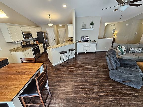 Looking for a great house in a great neighborhood? This home is for you! You will love this craftsman style ranch with a fenced in back yard in Creekside Estates. Offering 2400 sq ft of living space, 1600 sq ft of living space on the main floor and 800 sq ft in the basement. This home offers an open floor plan with vaulted ceilings, LVP & carpet flooring, a gas fireplace, and much more! The brick and stone front of the home with covered front porch is sure to impress. This house also has an oversized 2 car garage & extra parking spot in the driveway. In the backyard you have an oversized patio area with a pergola and a fenced in back yard great for the kids or the dog. Inside, the kitchen features premium cabinetry with crown molding & hardware, premium granite counter tops, breakfast bar, a walk-in pantry, dining area, and door leading out to the oversized patio. The master suite features a walk-in closet, tray ceiling, and master bath with dual sinks and walk-in shower. On the main level, you will find two more bedrooms, a full guest bath, & laundry room. Downstairs features a fourth bedroom with a walk-in closet and bathroom, an impressive bonus room with a wet bar & a large storage area on the unfinished side.