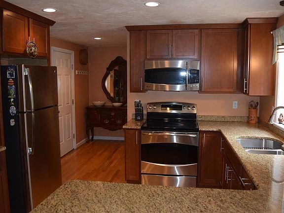 Fabulous 3 Bedroom 2.5 bath Colonial w/1-car garage in family-friendly subdivision Dighton Woods. This 6 year young home has a welcoming farmer's porch framing the front entry, and an open floor plan with front-to-back family room/dining area, open to gourmet kitchen, all w/hardwood flooring. Central Air, Granite countertops, stainless steel appliances, breakfast bar and beautiful floor to ceiling cabinets. 1st floor also has a half bath with a linen closet and sliders from family room to extra large deck overlooking back yard and woods. Hardwood staircase leads to 2nd floor which has 3 bedrooms and 2 full bathrooms with tub/showers. Large master bedroom has hardwood floors & 2 closets, one is a walk-in. Master bath and main bath both have granite topped vanities and ceramic tile flooring. The basement is partially finished into a playroom and the other part is utility area with laundry and heating/cooling system and water heater.