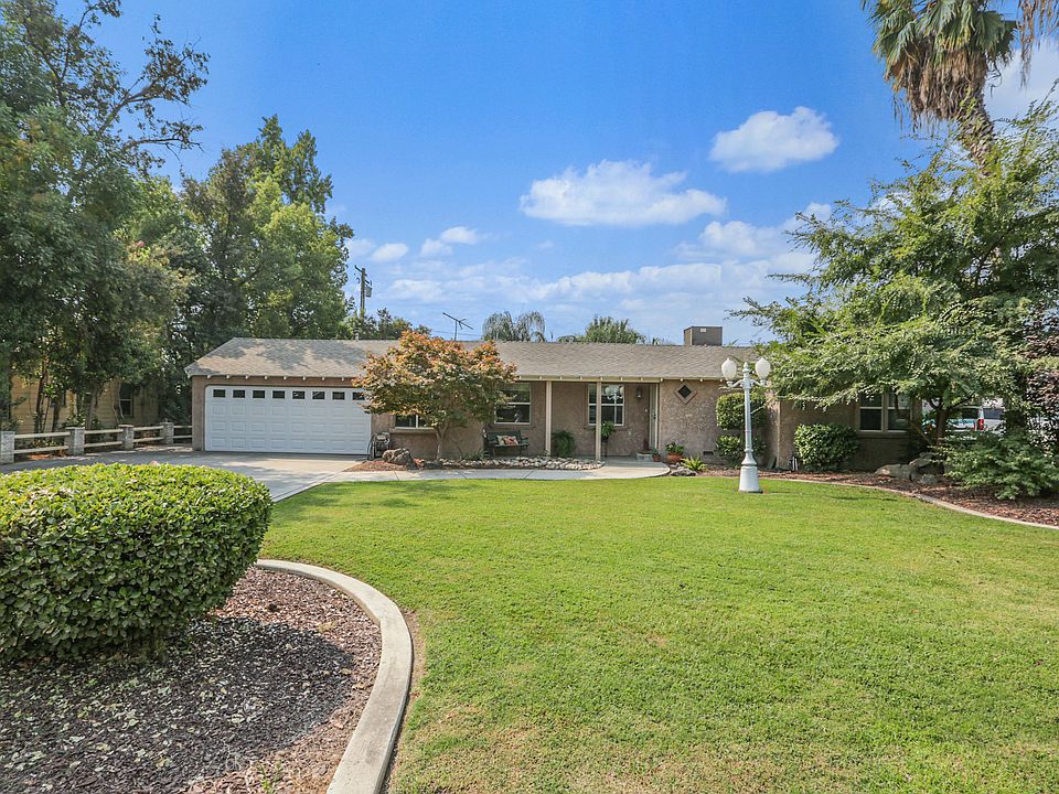 Beautiful home on almost half an acre in town! This home has it all: single level 3bd/2ba with a workshop and pool, and updated kitchen! Curved ceilings, wood floors, and real brick fireplace capture the original character. You'll fall in love with the gorgeous open concept, bright white kitchen with over-island hood, and sunken family room with exposed beams and plank ceiling. Gorgeous! The kitchen also features an eat-in breakfast nook and bar seating. The spacious master bedroom includes separate vanity space, and the master bath is located across the hall, which can be used as a second guest bath if needed. Outside you'll find mature landscaping, river rock, and patios. The backyard is an entertainer's dream: large covered patio, huge sparkling pool with in-ground umbrella and volleyball net holes, and enormous grassy area in the back with endless possibilities. The grassy area currently has horseshoe pits, a sitting area, and RV/vehicle parking with easy access gate.
