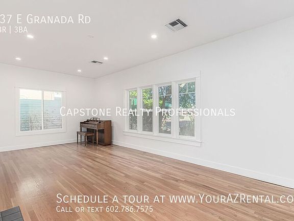 This breathtaking 3-bedroom, 2.5-bathroom home in the heart of the Coronado District perfectly combines modern conveniences with timeless elegance. Inside, you'll find a spacious family room with a mix of wood and concrete flooring and a cozy fireplace, flowing effortlessly into a flexible den space and a stylish kitchen. The kitchen features a generous breakfast bar island, sleek cabinetry, stainless steel appliances, and French doors leading to a charming side patio with sail shades perfect for hosting gatherings. The formal living and dining areas and the primary suite are highlighted by stunning wood beam ceilings. The luxurious primary bathroom boasts a huge walk in shower with two shower heads, a large soaking tub, and dual sinks for ultimate comfort. Step outside to enjoy a beautifully landscaped backyard with lush grass just minutes from downtown's vibrant entertainment district. Don't miss out and schedule your tour today! THE CORONADO NEIGHBORHOOD: Phoenix Magazine ranked the Coronado Historic District as the hottest neighborhood in the Valley. Coronado is known for restored 1920 bungalows and 1940 ranches and many are showcased in the annual Coronado Home Tour and Street Fair which is getting bigger every year. The average Coronado home has a small footprint with 2 bedrooms, 1 bathroom, and is about 1000 square feet and sometimes as small as 700 square feet - sustainable living at its best! There is often more to Coronado than meets the eye. Ample backyards may host a permaculture garden a flock of chickens or a state-of-the-art addition that hides behind a traditional Territorial in front. Great restaurant choices are The Main Ingredient on 7th Street, Tuck Shop at 12th & Oak (must try the house-made gin & tonic), and the five-star Barrio Cafe. Coronado is home to one of the largest city parks Coronado Park with tennis basketball a lighted baseball or kickball field and a community pool with a water slide. Students from across the city come to North High School's competitive and highly recognized International Baccalaureate program. Being outside sitting under a wide shady porch is popular and may be why everyone in Coronado seems to know each other. Drive walk or bike down one of the streets lined with restored historic homes and friendly neighbors to feel the community pride and unique energy of this central Phoenix community. -- Monthly Residential Benefit Package: $49.99 Security Deposit: Equal to one months rent Refundable Cleaning Deposit: $400.00 Refundable Pet Deposit: $200.00 per pet Carbon Monoxide Detectors Carport Spaces: 2 Concrete Flooring Dryer Historic Neighborhood Irrigation System Separate Shower And Tub Smoke Detectors Washer Wood Flooring