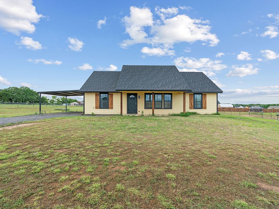 Built in 2023, this beautiful 3-bedroom, 2-bath home in Poolville, TX sits on a full one-acre lot, offering the perfect mix of modern comfort and peaceful country living! The open-concept layout features high ceilings, plenty of natural light, and a stylish kitchen with granite countertops, stainless steel appliances, and a spacious island ideal for entertaining. The primary suite offers a relaxing retreat with dual vanities and a large closet, while the secondary bedrooms provide plenty of space for family or guests. With room to expand, add a shop, garden, or pool, this property gives you the freedom to make it your own!