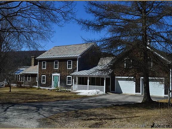 Total privacy set along a back town gravel road (1 1/2 miles from historic East Poultney Village Green) on 138 surveyed acres this 1997 restored and built 5 bedroom, 3 1/2 bath home is incredible. +/- 4,400 SF with 25x25 great room with cathedral ceilings and stone fireplace, cathedral master bedroom with stone fireplace, attached green house, granite counter "cook's kitchen" and huge wraparound deck with gorgeous views!+/- 30 Acres fenced meadow/pasture, attached, heated, 2 car garage, 30x40 barn.