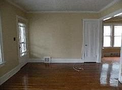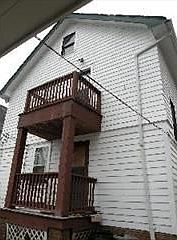 Two family home. UP unit. Security Door. Covered Balcony. Living room with carpet, coat closet, decorative fire place, shelves and blinds. Dining room with ceiling fan. Cable Ready. 2 bedrooms with closets. Full bath. Kitchen with eat double sink, refrigerator, gas stove, ceiling fan. 1 car garage. Free: water, sewer, trash, snow removal, lawn care.