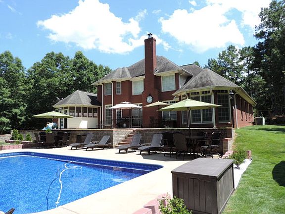 DEEDED 5+ acre lot on Lake Harding! All brick home w/master on main; sitting rm overlooking saltwater in-ground pool (new liner), landscaped ppty and lake. Power gated entry to ppty w/remote.Hardwood floors, fabulous kitchen w/all the extras, impeccably maintained. 11 years young, not too big or too small; workshop w/power; outbuilding; extra paved parking; Sodded yard; Maple trees; 140 azaleas; must see this to believe it! Private lot w/open land and naturally wooded.Tree house in woods/camping