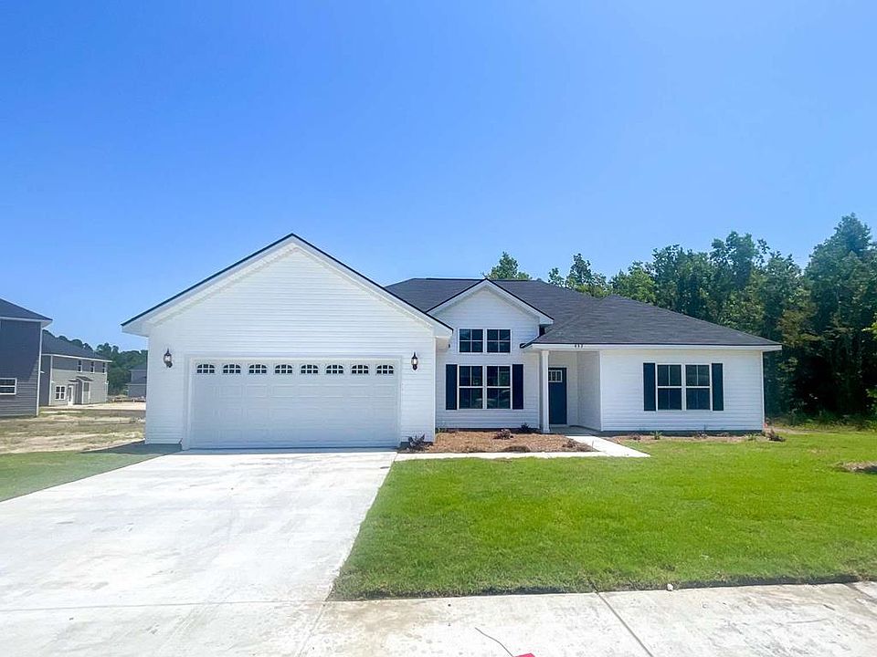 Patricia 5 in Cherokee Station, situated conveniently in Hinesville near local shopping! Four-bedroom ranch plan with a split layout & open-concept living space at the heart of the home. Formal dining room with an elevated ceiling just off the entryway that opens up to the family room. Enjoy your backyard from the covered porch which can be accessed from the family room, too! The open kitchen features stainless appliances, granite counters with white cabinetry & a clear view of the family room from the island. From the open living space, access the laundry room, 2-car garage & master suite from a hall off the kitchen. Master suite includes a vaulted ceiling, spacious walk-in closet & private bath with granite vanity counter, soaking tub & separate shower. Three additional bedrooms & hall bathroom with a granite vanity counter located off the family room. Showing Instructions: