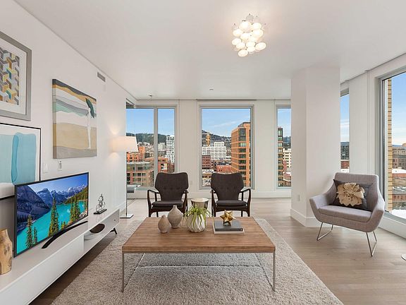 Immaculate modern Pearl District condo perched above city lights with breathtaking 180 degree views. Natural light glistens through the floor to ceiling windows surrounded by an open floorpan. Entertainer's kitchen w/ clean lines, high end Dacor appliances, quartz countertops & hardwood floors. Master suite w/ custom shower & cityscape views. LEED Platinum building w/ at your service concierge. Corner unit near street car, shopping & restaurants.