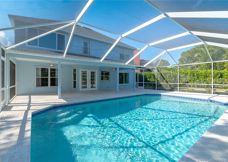 Beautifully maintаіnеd & inviting 4ΒD/2.5BΤH CSB pool homе tuckеd away on a peaceful cul-de-sac lot. You’ll love the privacy & tranquility of this setting, w/ minimal traffic & a true sense of neighborhood calm. Inside, discover a versatile 2-story layout offering separate living, dining & family rooms-plenty of room to gather & spread out. The kitchen offers generous cabinet/counter space, breakfast bar, SS appliances, & French doors opening directly to the poolside patio. The upstairs primary features a walk-in closet, dual vanities & soaking tub. Three additional bedrooms provide flexibility, ideal for kids, guests or home office. Step outside to your private backyard retreat w/ saltwater pool & screened enclosure, perfect for year-round enjoyment. Peace of mind comes built in w/ complete panel shutters, 2018 roof, newer A/C, & resurfaced pool (2020). Located close to pristine beaches, waterways, marinas, A-rated schools, & charming Downtown Jensen Beach, this home checks every box!