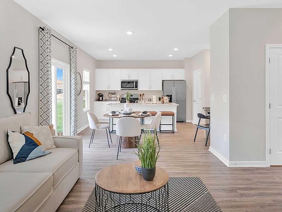 Welcome to the Belhaven at Magnolia Ridge! The DR Horton Tradition Home Series features this two-story home with 1,991 square feet consisting of 4 bedrooms, 2 1/2 bathrooms with an open concept living space. 937 O 'Hara Court has an attractive brick exterior, vinyl siding, shake with Architectual shingles. Off the main entrance of the home is the flex room with glass French doors that could be used as a study, playroom, or formal dining area. At the end of the foyer, you will have a coat closet, half bathroom, and open concept living space. The 9ft high ceilings, sleek quartz island with seating for four makes this space an entertainer's dream. Exquisitely crafted shaker style cabinets with 36'' wall cabinet featuring crown molding and designer inspired raised cabinet at microwave, Stainless Steel appliances by Whirlpool®, including Self Cleaning Electric Range, 1.7 cu. ft. Microwave, and Built-In Dishwasher all included. The kitchen island has undermount stainless-steel sink with Moen® Chrome single lever faucet and sprayer, Moen Chrome fixtures on draw pulls and cabinets. Flooring for the Belhaven has the Emcore LVP flooring on the first story, Emcore LVT flooring in the bathrooms and laundry and the second story of the home has Mohawk® Carpet with Scotchgard. LED lighting throughout the home, you will also find that all the bedrooms, flex room and main living area are ceiling fan pre-wired. The primary bedroom has an abundance of living space, primary bathroom, walk in closet, double vanity sinks, with convenient location to the rest of the home. All DR Horton homes come with the Home Is Connected Smart Home Package and builder warranty. See sales agent for promotional details.