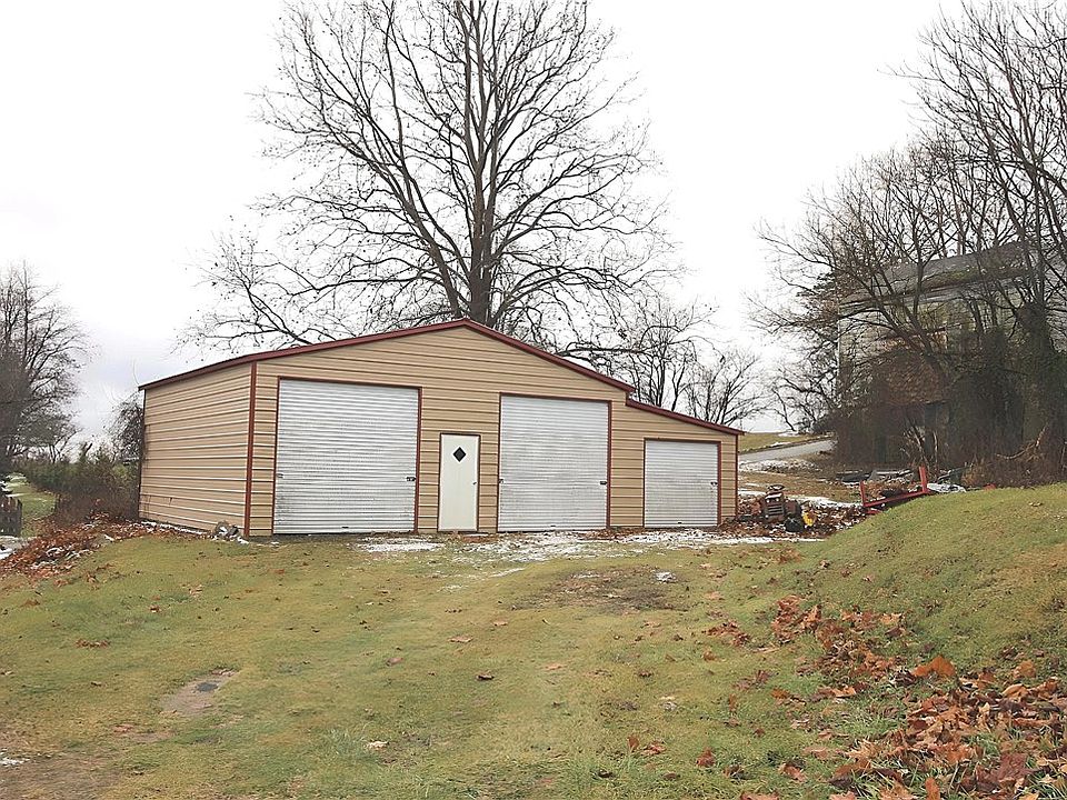 Built in 2018, this metal pole building measures 30 x 42. There is a man door, two oversized garage doors and a standard garage door located on a 1/4 acre lot.